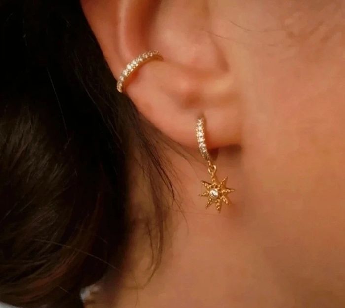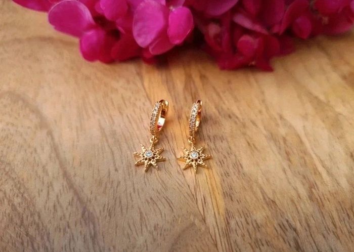 Boucles d'oreilles créoles étoiles du nord pendantes en plaqué or et strass zircons - photo numéro 1