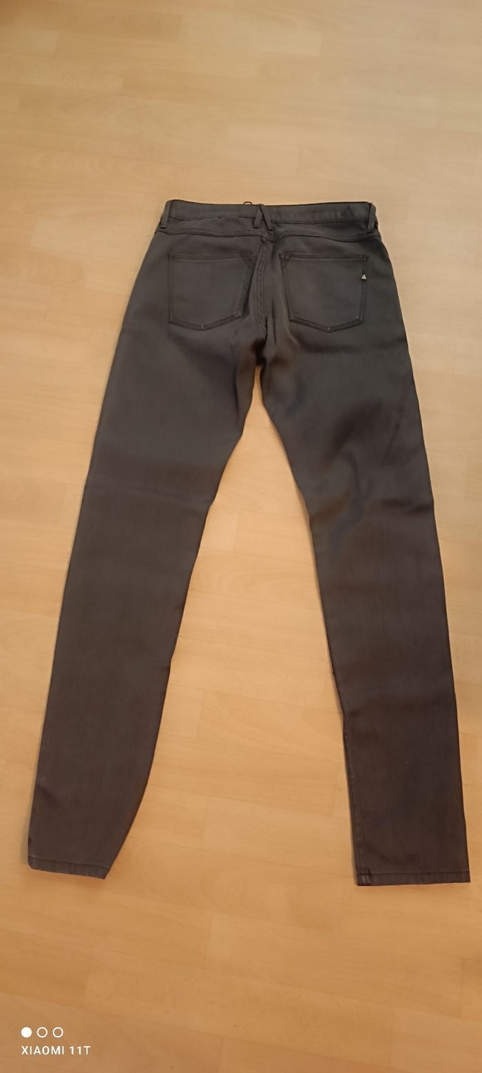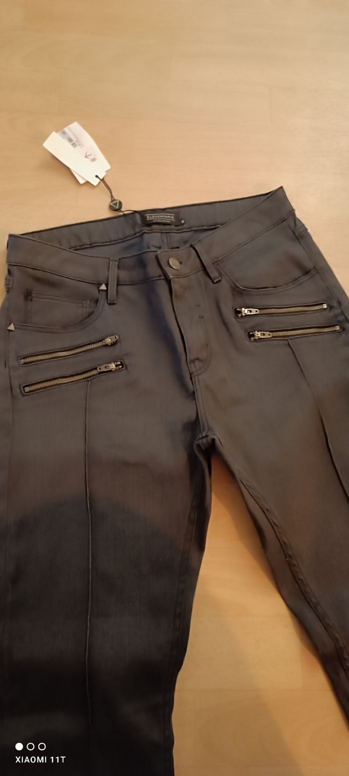 jean diddy femme taille 40 ( USA = 30 ) ELEVEN PARIS couleur gris anthracite coupe slim fermeture éclaire + bouton 2 poches avant et arrière 4 zips sur l'avant 98% coton 2% lycra longueur totale = 110 cm longueur prise de la taille a l'entre jambe = 34 cm largeur taille = 40 cm largeur chevilles = 15,5 cm Neuf + étiquette