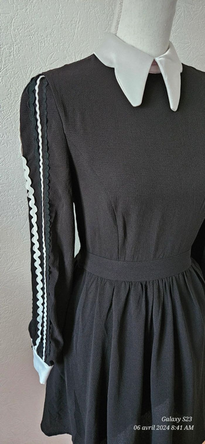 🔴 RETROUVEZ LES DIMENSIONS SUR LA 2EME PHOTO Robe non portée. Col et poignets satiné. Doublée. Taille XS, Molly Bracken ❌️ Pas de photos portées ! Le mannequin est là pour me remplacer ! Merci pour votre compréhension.