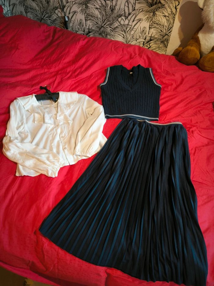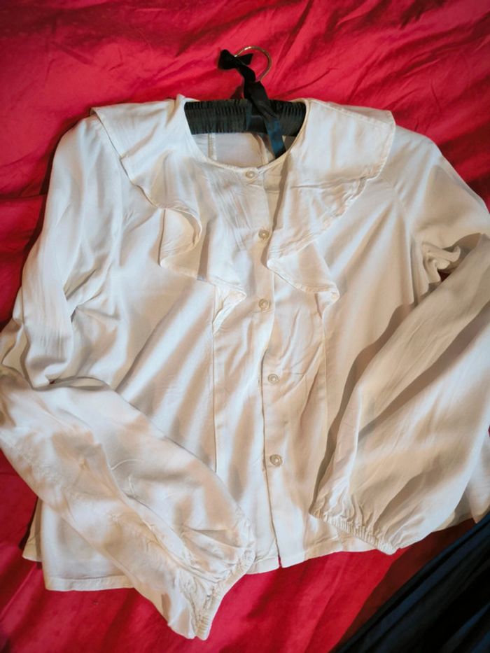 XXS JUPE NEUVE SANS ÉTIQUETTE PULL SANS MANCHES PORTÉ UNE FOIS COMME NEUF CHEMISIER BLANC À VOLANTS TRES BON ÉTAT