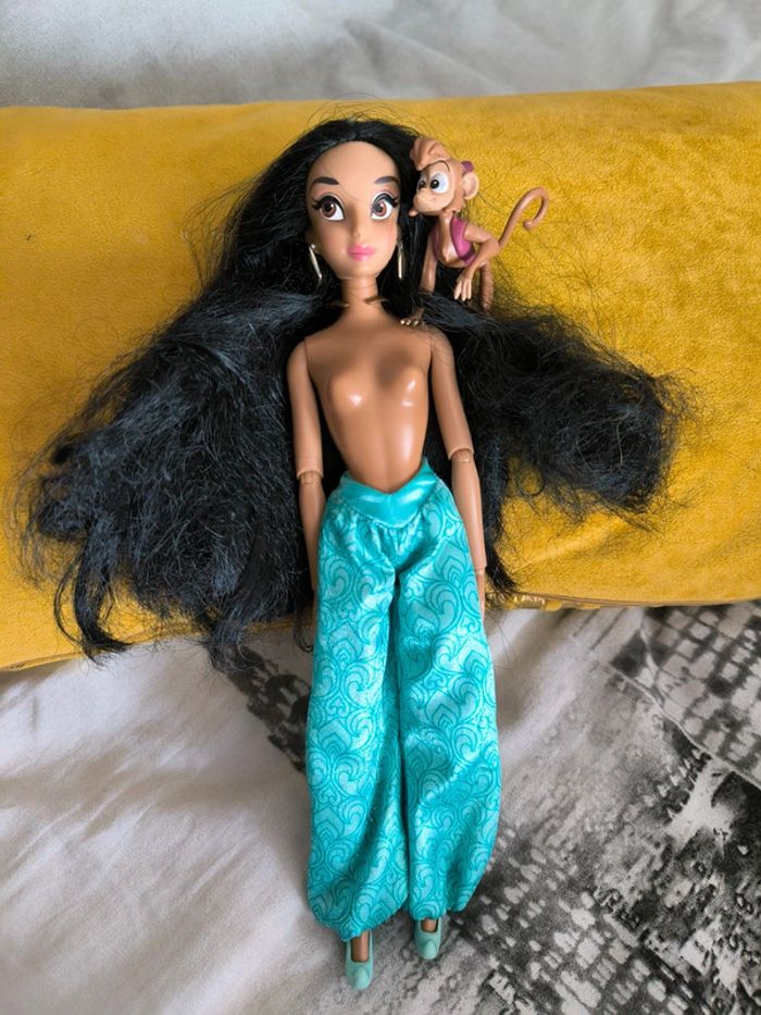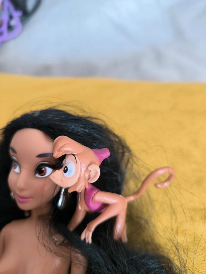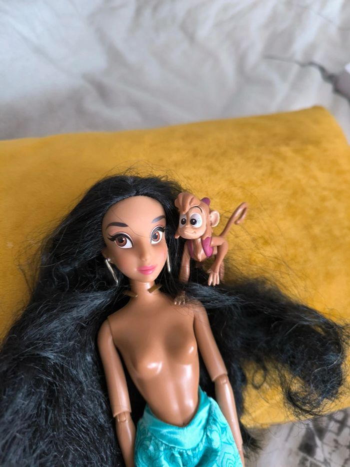 Poupée Jasmine et son singe de chez Disneystore Il lui manque le haut... Je le cherche encore... 🙄 un haut sera créé par les soins en couture...