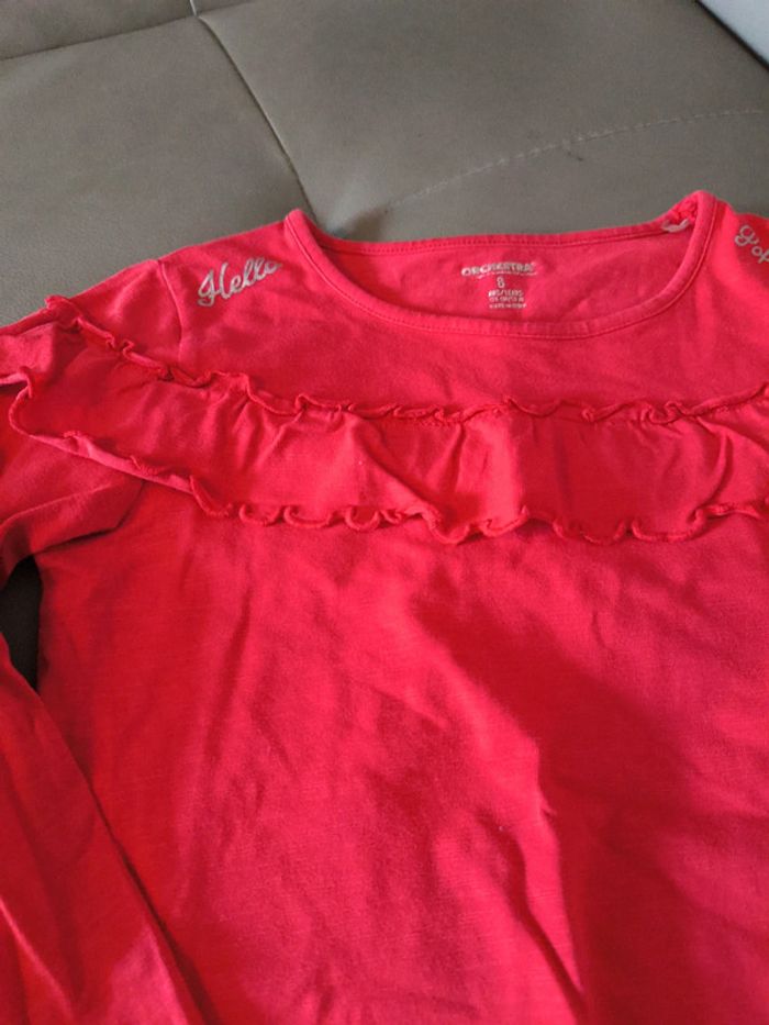 T shirt rouge manches longues avec col volants orchestra 8 ans