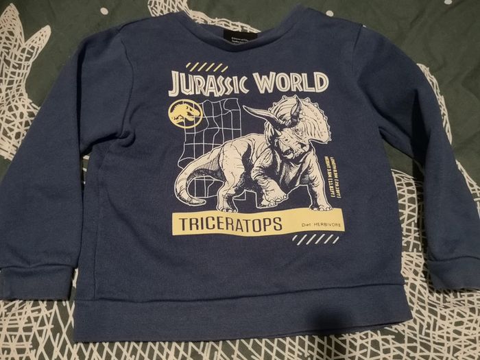 Sweat Jurrassic Park 3 ans bleu motif Triceratops acheté été 2023! Servi pour 1 seul enfant