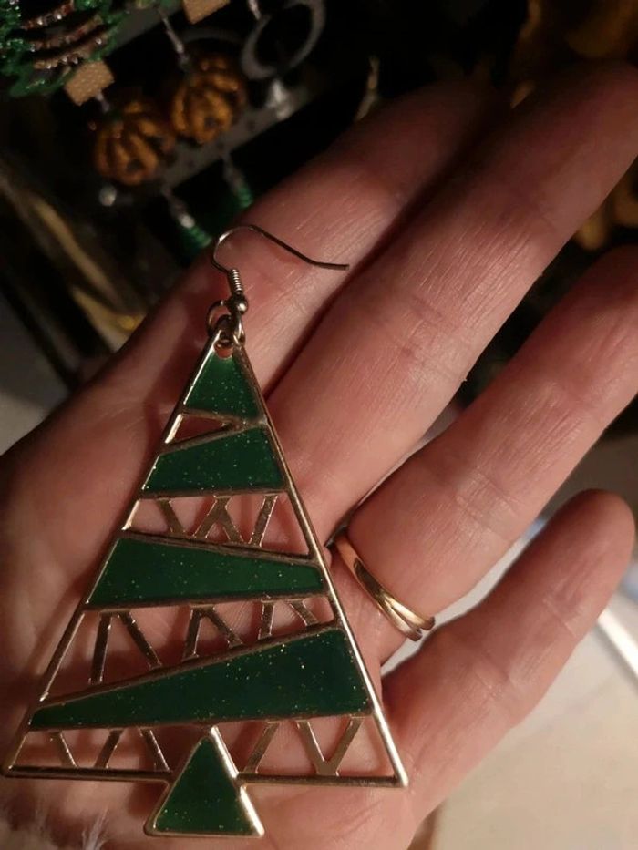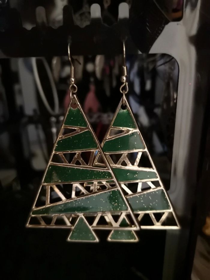 Cert année je change ma. Deco d'oreilles 😆🎄 Grandes boucles d'oreilles sapin dimensions voir photos... Très bon état
