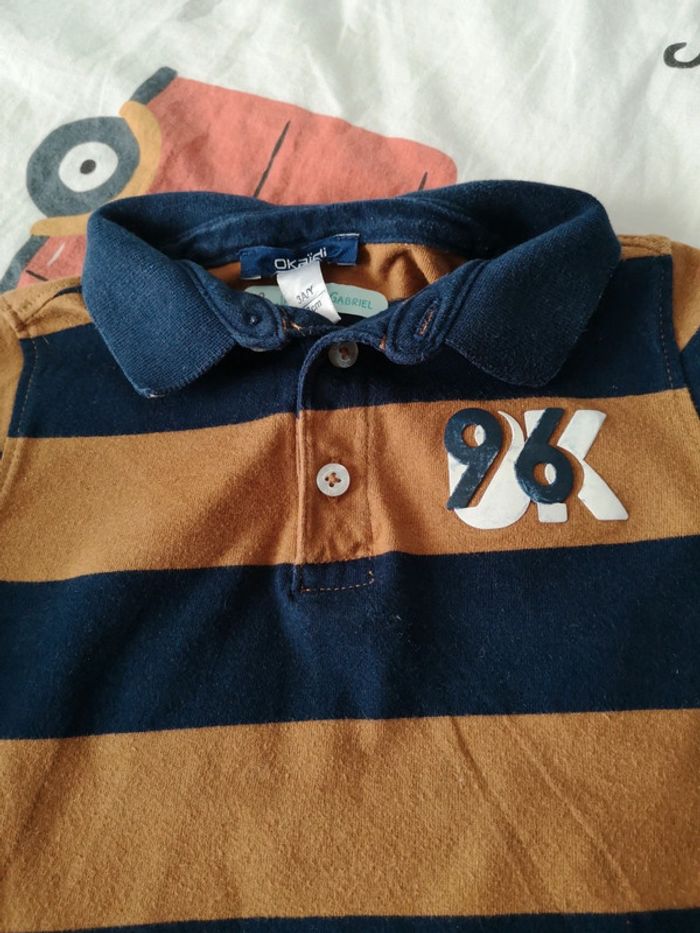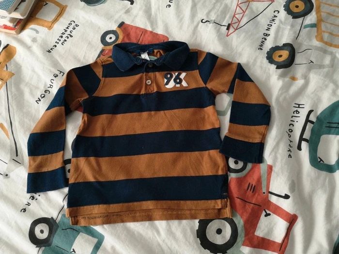 T shirt manches longues Bleu et camel rayé, col et boutons Très beau porté