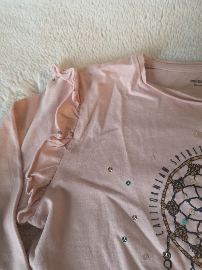 T shirt manches longues rose clair Motif Attrape rêve Volant aux épaules Comme neuf peu porté