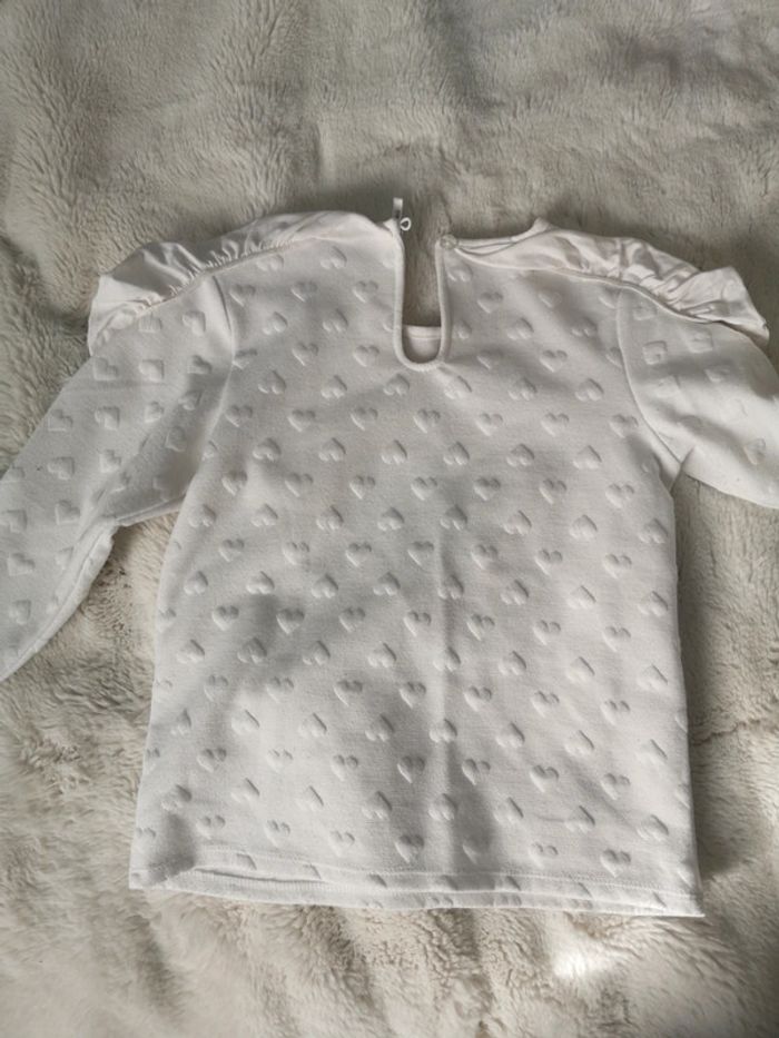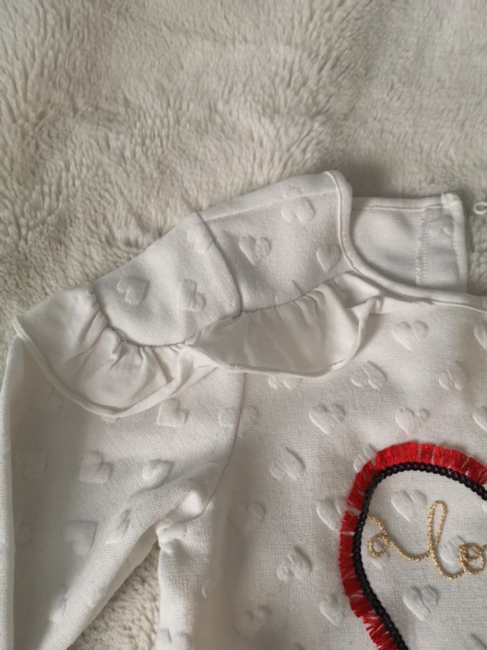 T-shirt manches longues avec des relief cœur épaule avec volant fermeture d'eau avec un petit bouton un cœur brodé rouge et marquer love au fil doré