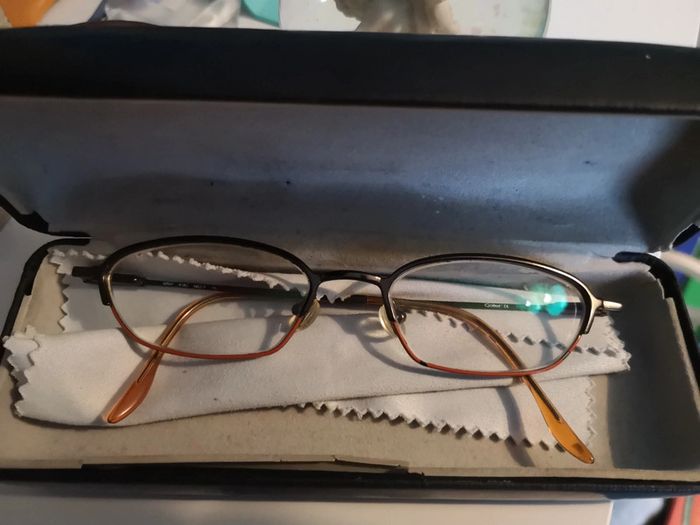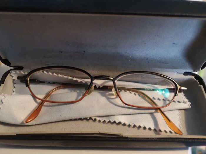 Monture lunettes de vue, tons bruns Changement de verres et de monture je revends celles ci e' très bon état. Ajuster cis verres