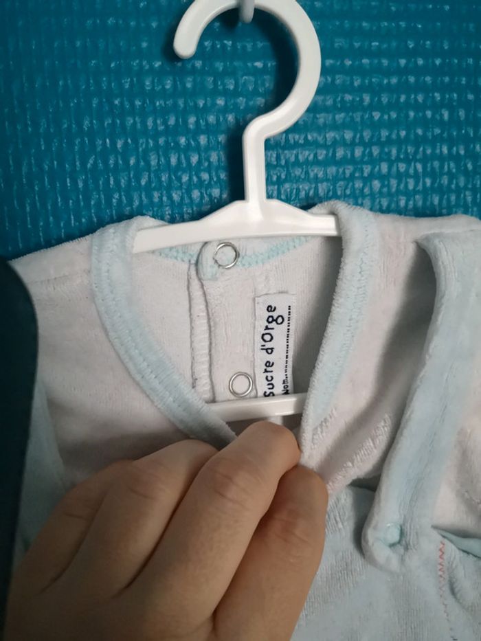 Très beau pyjama bleu et blanc de la marque Sucre D Orge 9 mois Très bon état aucune tâche lessive non industrielle non fumeur pas d'animaux