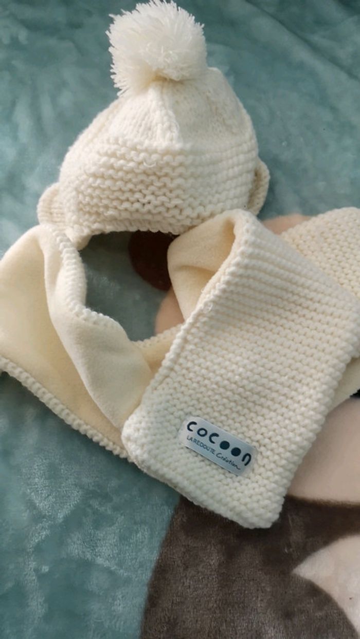 ensemble bonnet écharpe + chaussons pour bébé 6 mois Cocoon la redoute +1 attache sucette de Noël/hiver selon sexe du bébé neuve fait main (BB MON UNIVERS)