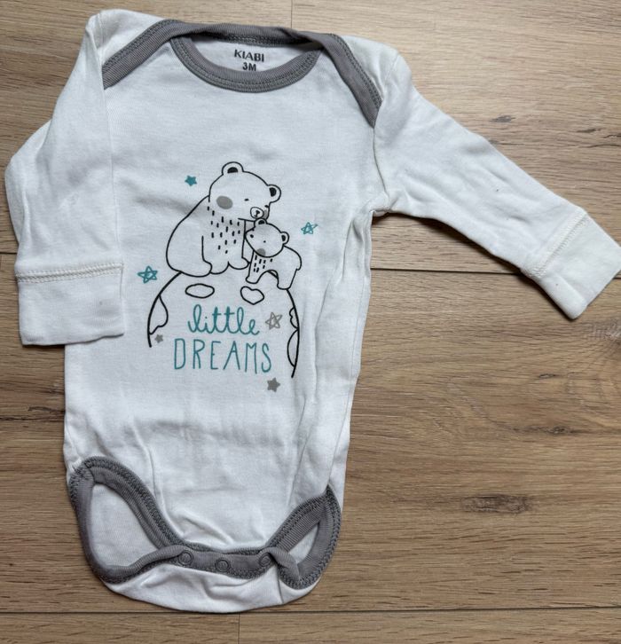 Body 3m Kiabi blanc et gris ours Little dreams
