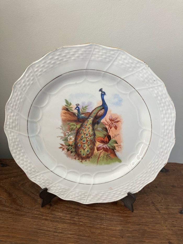 Belle assiette à dessert-Terre de fer-Moulin des loups-Hamage-Motif paon - photo numéro 10