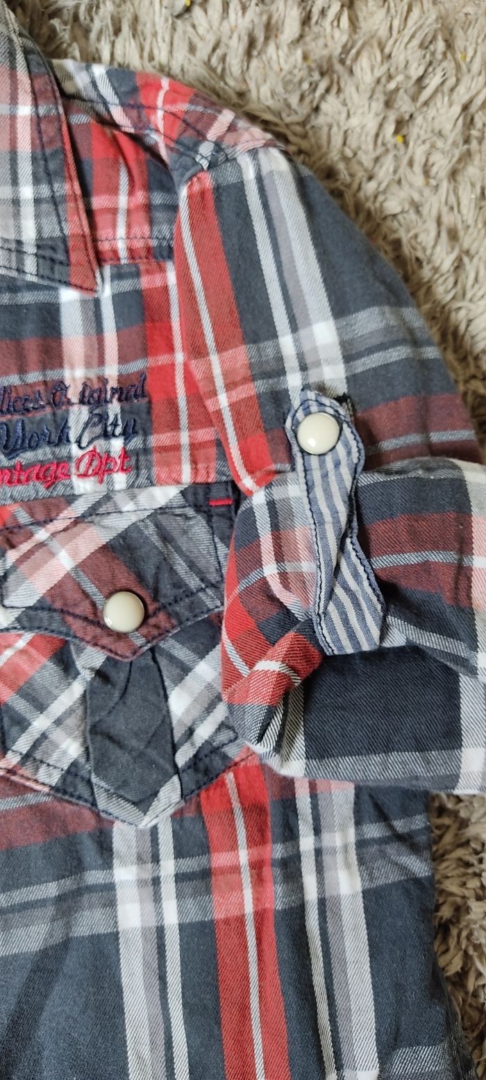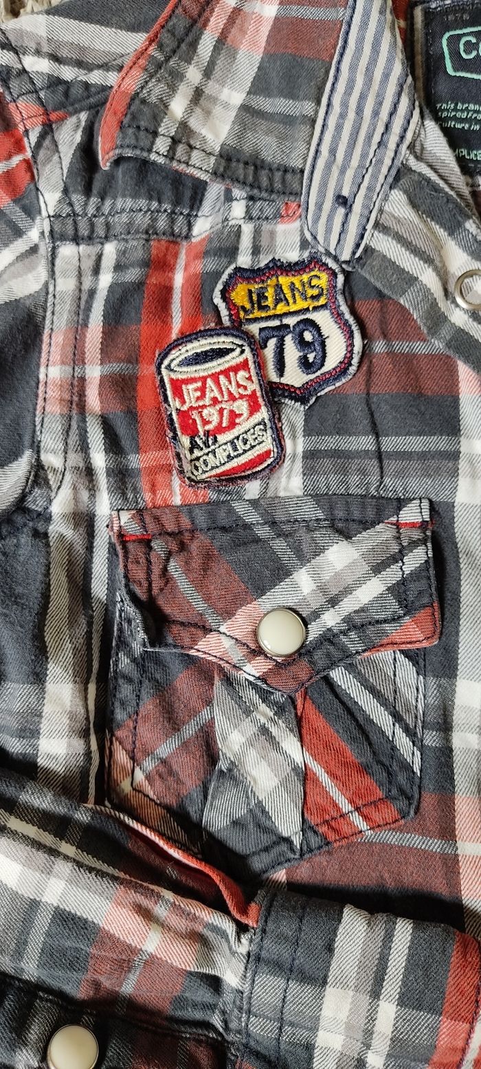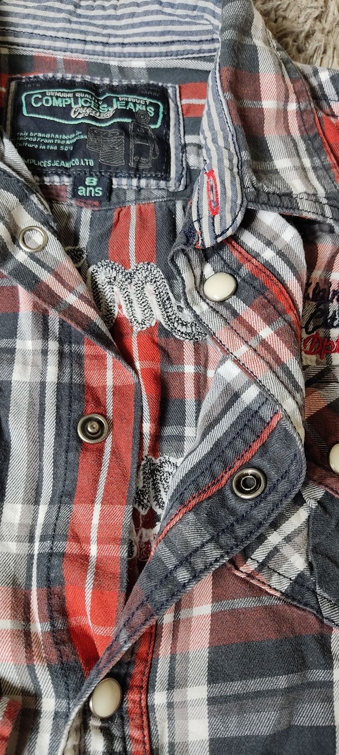 Chemise complice jeans 8 ans Fermeture par pression Possibilité de remonter les manches A carreaux gris blanc et rouge Très bon état D'autres articles dans le dressing et réductions activées 🌺
