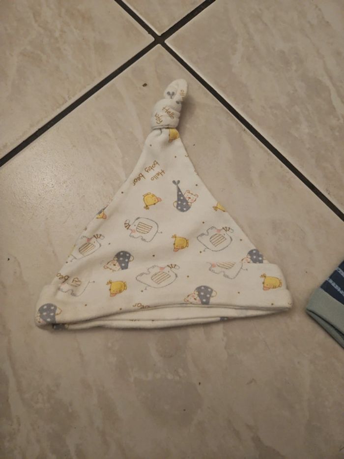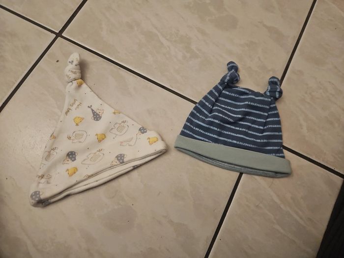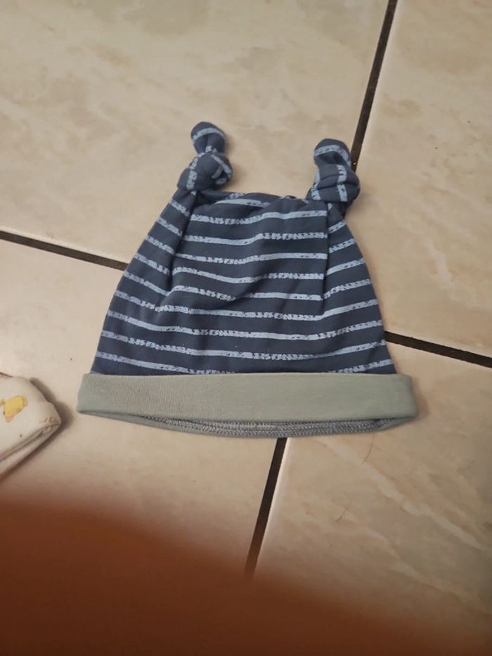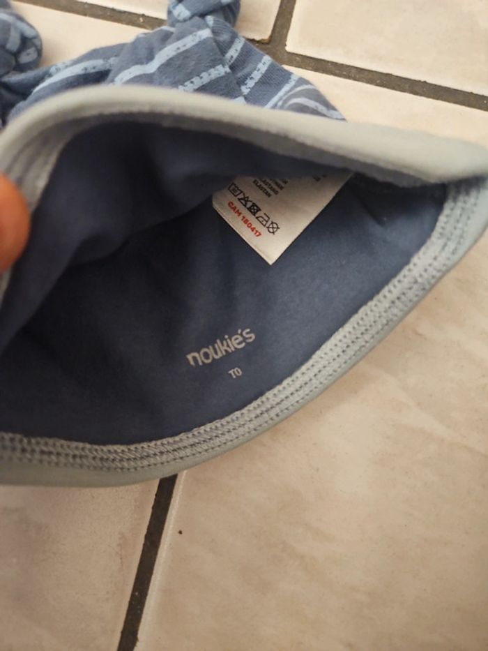 Bonnet de naissance taille 0 nouveau nee de marque noukies le bleu a rayure a jamais ete porté neuf l autre porter 1 fois ou 2