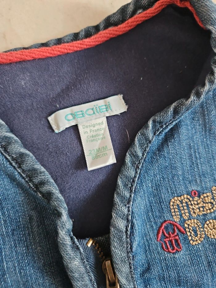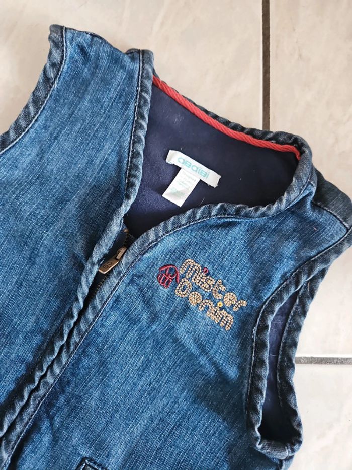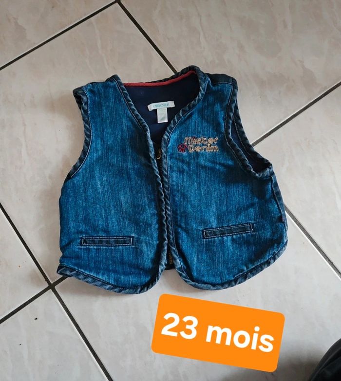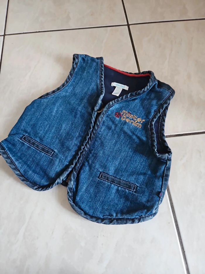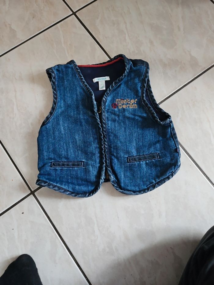Veste sans manche habiller en jean de taille 23 mois porter 1 fois pour 1 occasion en super état comme neuf