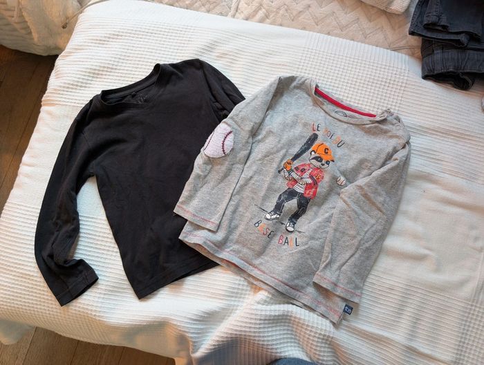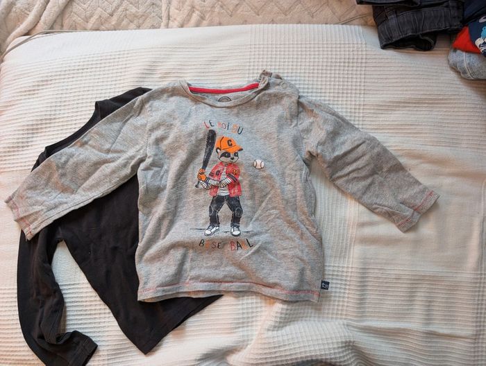Lot de 2 t-shirts à manches longues : - 1 t-shirt noir 92 cm - 1 t-shirt gris dpam 3 ans - 95 cm
