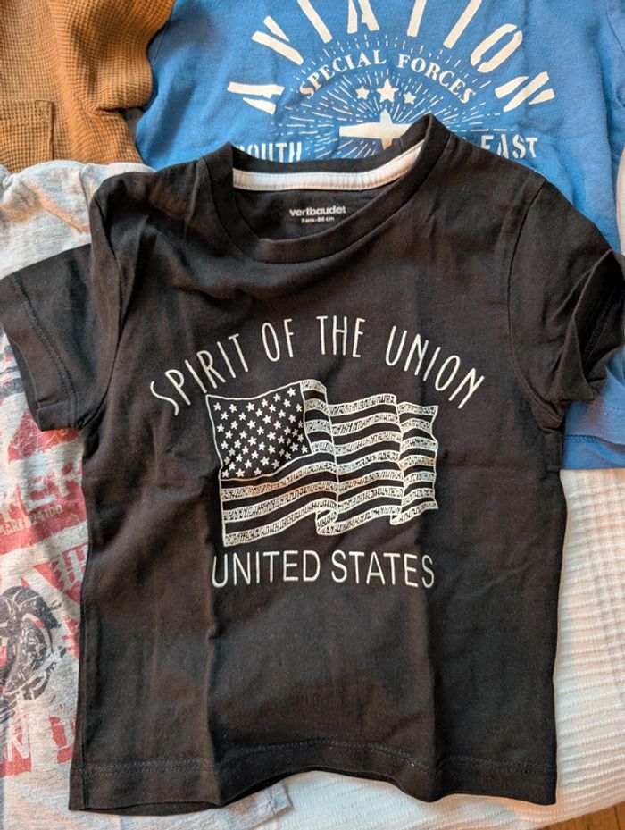 Lot composé de 4 t-shirts Vertbaudet, 1 t-shirt Primark (86 cm) et 1 t-shirt Mini gang (26 mois)