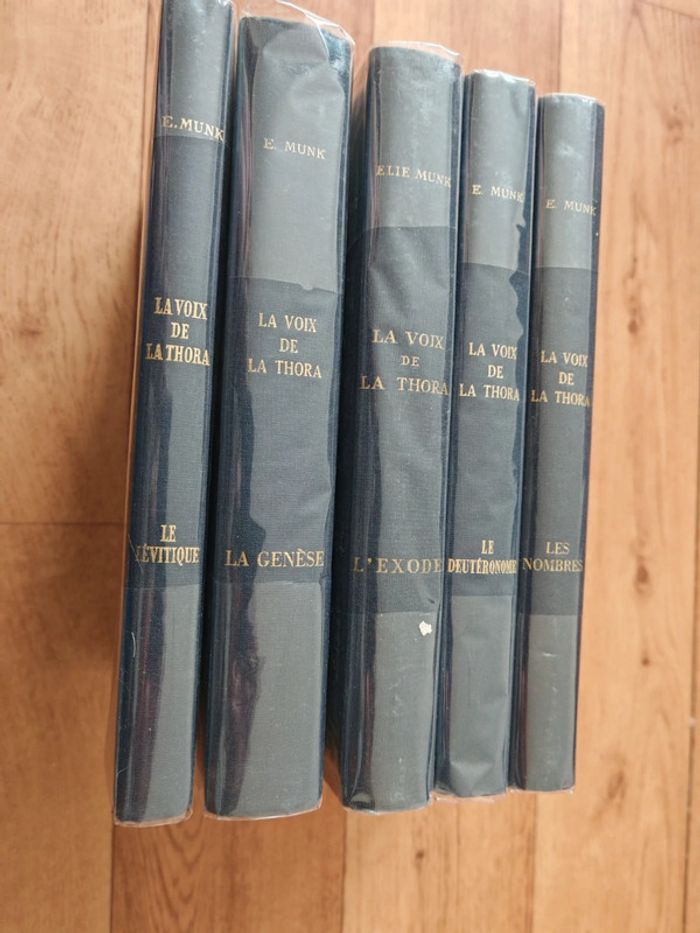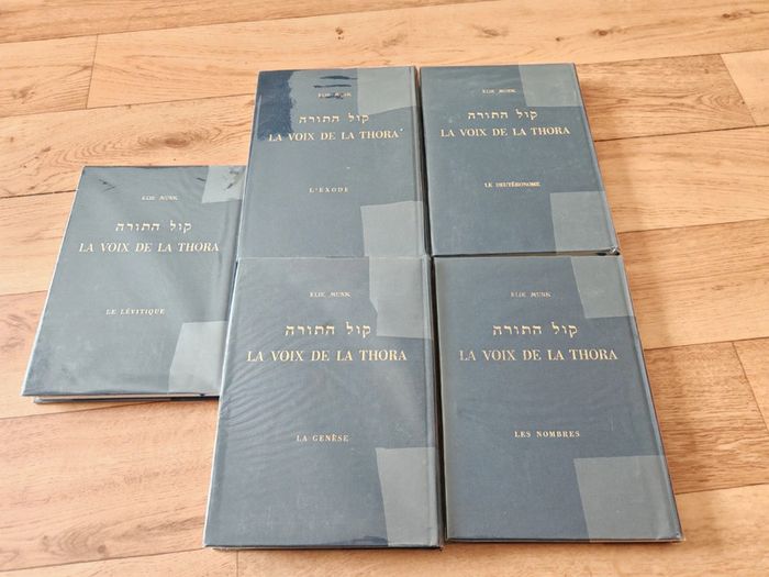 À vendre : "La Voix de la Thora" d'Elie Munk, une œuvre magistrale en 5 tomes, complète et incontournable pour explorer la Torah en profondeur. Chaque volume – Genèse, Exode, Lévitique, Nombres et Deutéronome – offre un commentaire riche, accessible et érudit, fruit du savoir exceptionnel du rabbin Elie Munk. Idéal pour les étudiants, les enseignants ou toute personne passionnée par l’étude des textes sacrés, cette série allie tradition juive et clarté pédagogique. État impeccable, édition soignée, ces 5 tomes sont une opportunité rare d’acquérir un trésor spirituel et intellectuel. Parfait pour enrichir votre bibliothèque ou offrir en cadeau. Prix attractif pour l’ensemble. Ne manquez pas cette chance d’approfondir votre compréhension de la Torah avec une référence reconnue mondialement. Contactez-moi pour plus d’infos ou pour finaliser l’achat !