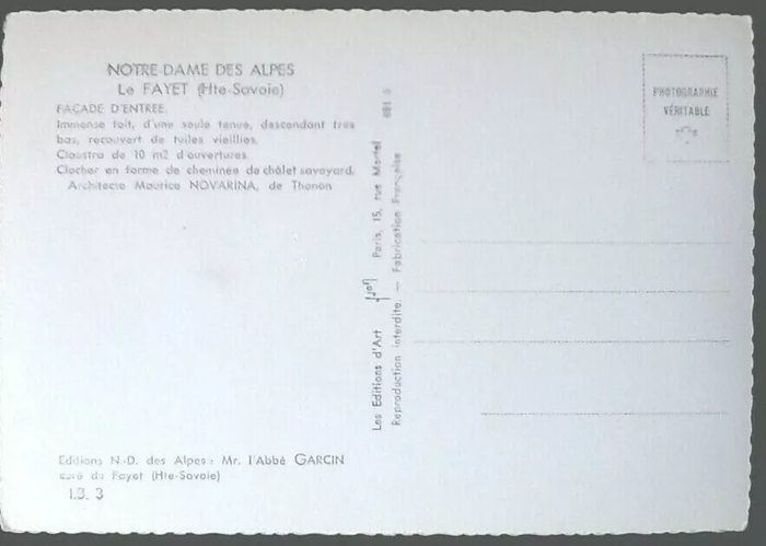 Carte postale ancienne  Le Fayet (Haute-Savoie) Notre-Dame des Alpes - photo numéro 3