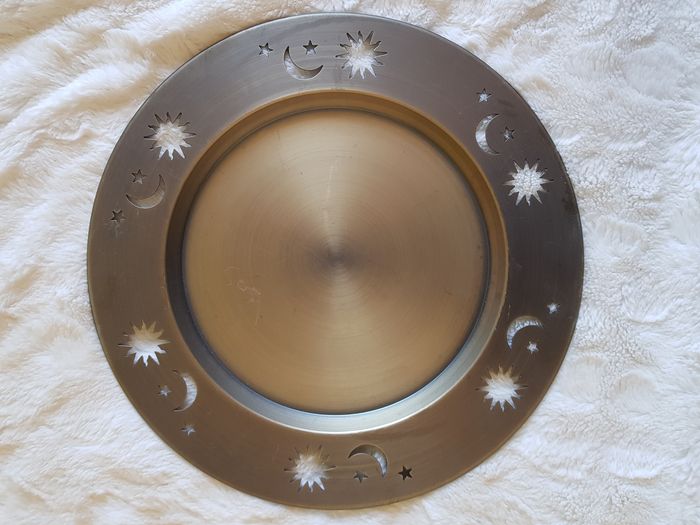 Plat de décoration doré, le dessous est un peu abîmé