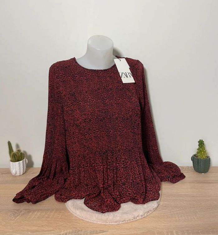 Blouse rouge léopard Zara Neuve - photo numéro 1