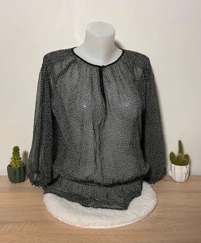 Blouse transparente noire à pois blancs manches 3/4 Zara - photo numéro 1