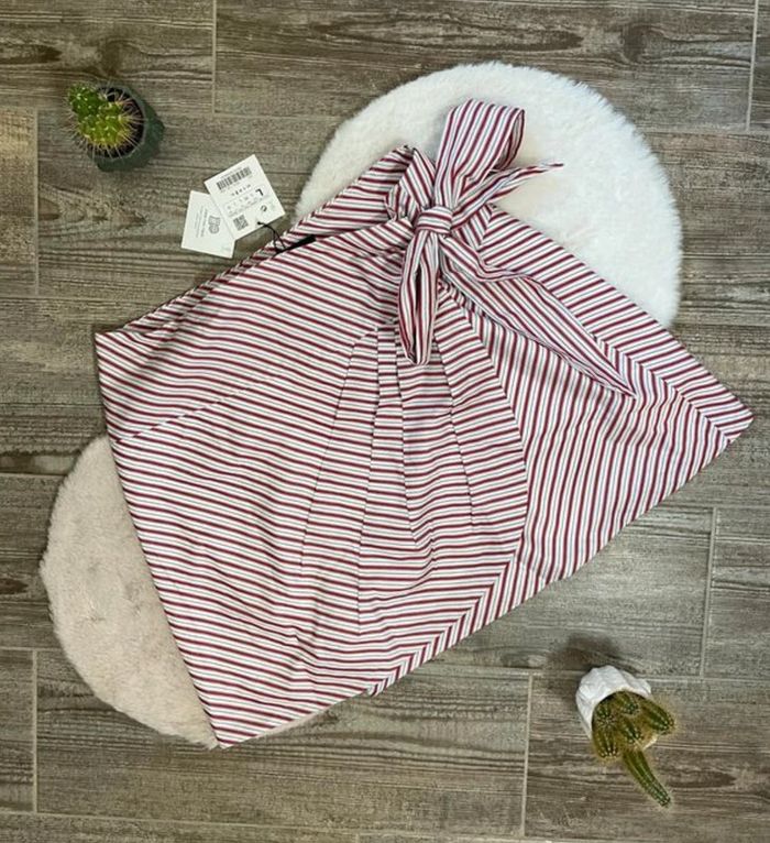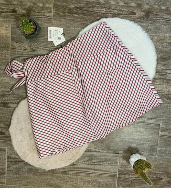 🍒 Motif à rayures rouges, blanches et noires ✨ Fermeture par 3 boutons 🌹 Bande large pour faire un noeud élégant 👒 Matière doublée Neuve 🌟 Acheté sur Vinted, ne me convient pas Tour de taille : 83cm Longueur : 43cm