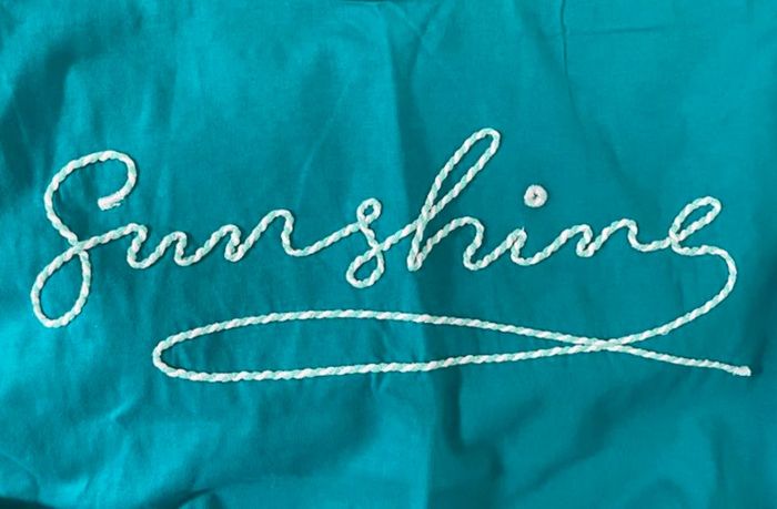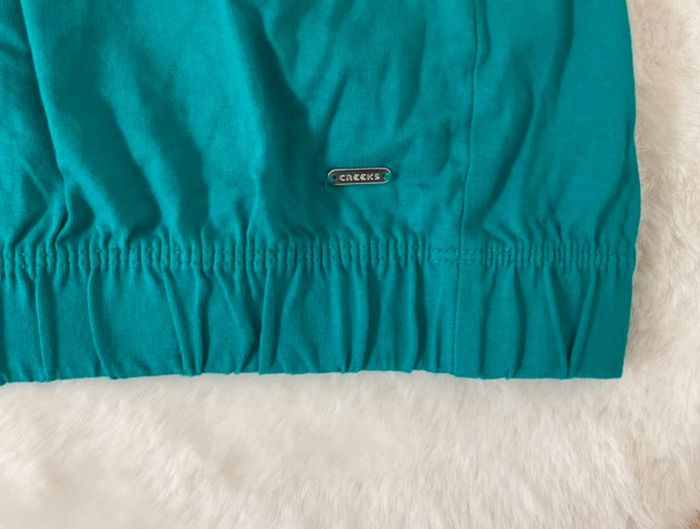 Comme neuf 🌟 🦋 Manches amples 🍀 Écriture brodée 🌱 Bas resserré 🧶 100% coton Couleur bleu / vert : turquoise