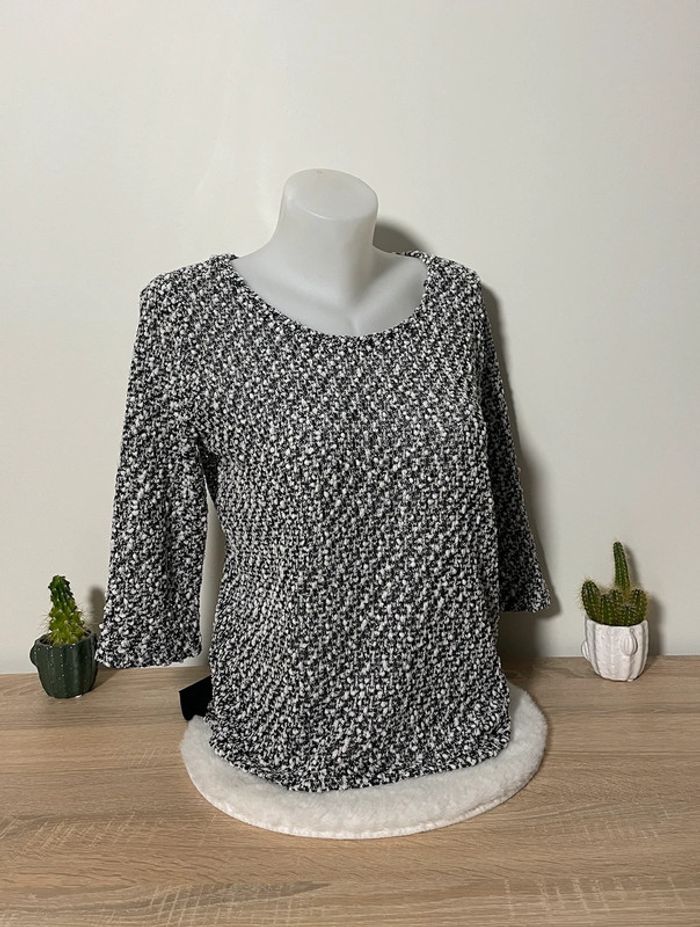 Top manches 3/4 noir et blanc Dos transparent Kiabi - photo numéro 1