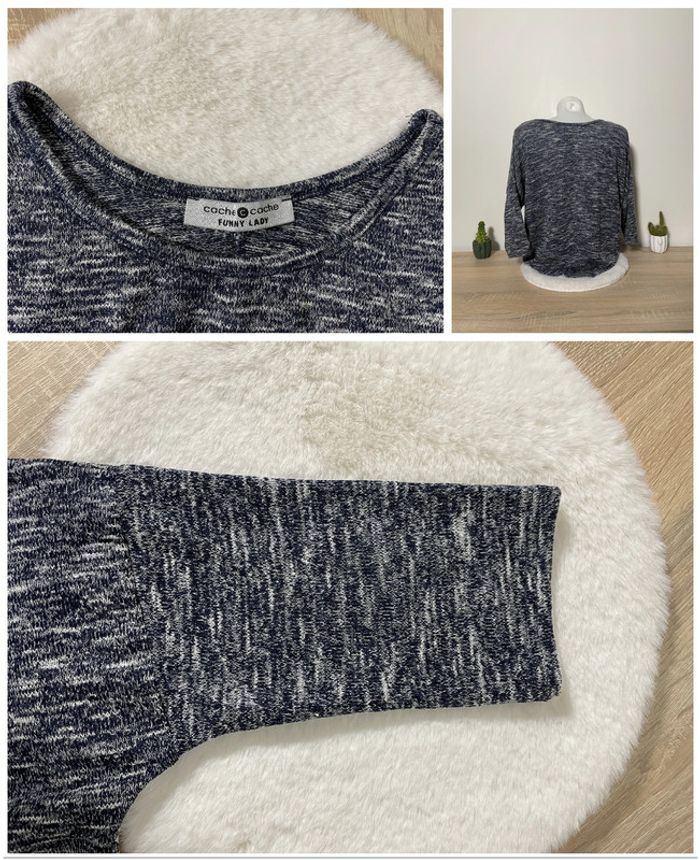 Pull fin bleu chiné manches 3/4 oversized Cache Cache
