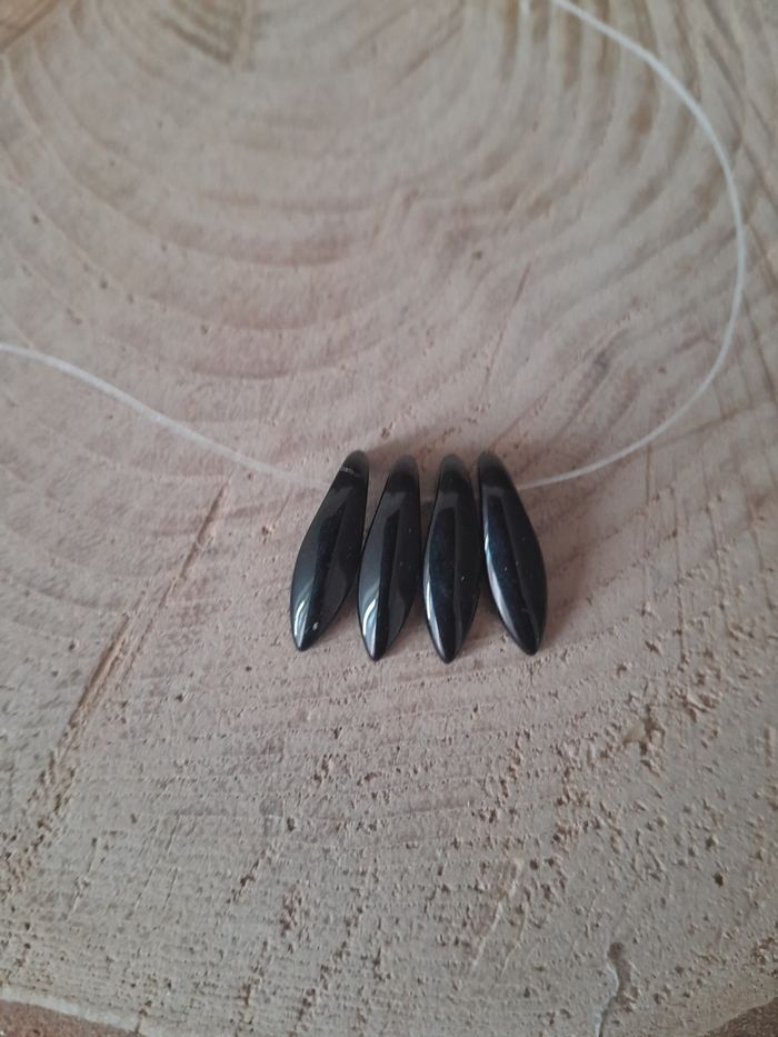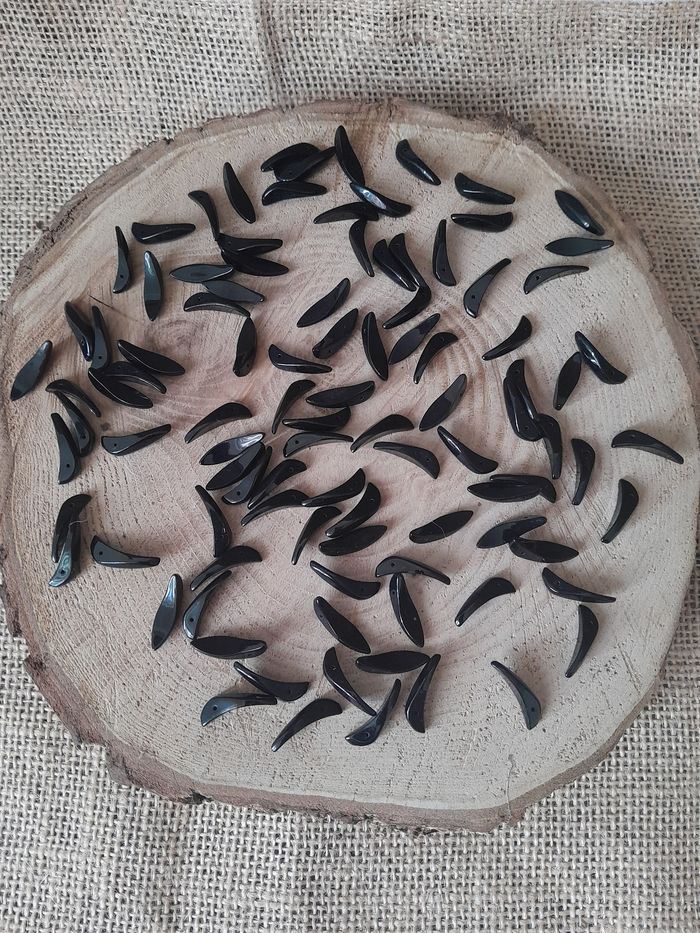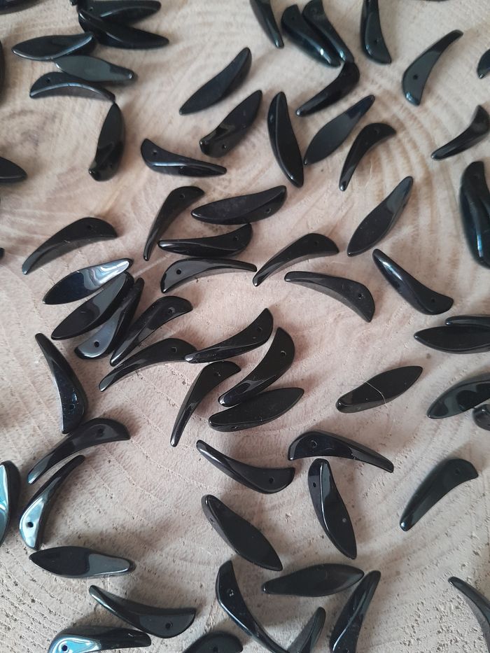 Lot de 50 perles en verre feuille noires 15euros le lot ou 30euros les 100 Dimensions sur les photos D'autres perles et accessoires de dispo dans mon dressing n'hésitez pas à jeter un coup d'œil ou à me demander