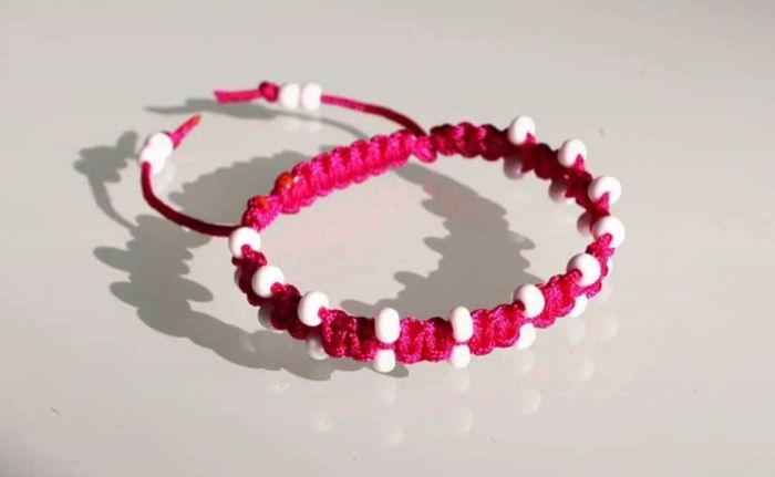 Bracelet shamballa rose et blanc. Cordon macramé rose et perles blanches. #elolie311_bijoux