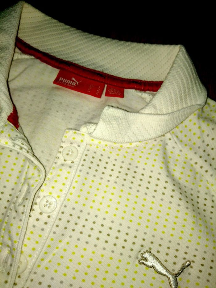 Polo femme Puma blanc avec points jaunes et gris. Neuf. Taille 38 #elolie311_femme38 #elolie311_femmeM