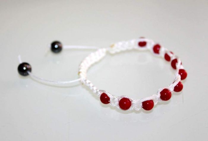 Bracelet shamballa blanc et perles de corail rouge