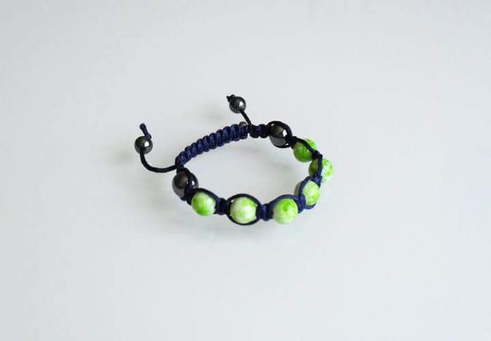 Bracelet shamballa bleu et vert . Cordon macramé bleu marine et perles vertes . #elolie311_bijoux