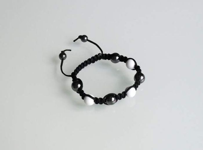 Bracelet shamballa noir et blanc . Cordon macramé noir et perles blanches et hématites. #elolie311_bijoux