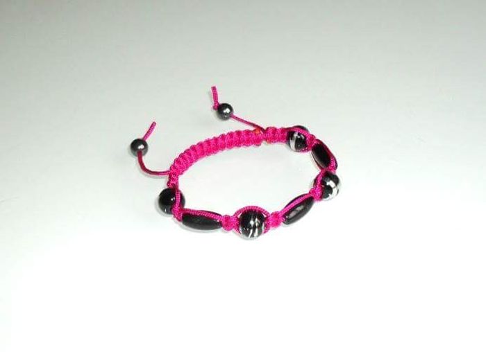 Bracelet shamballa rose et noir. Cordon macramé rose et perles noires #elolie311_bijoux