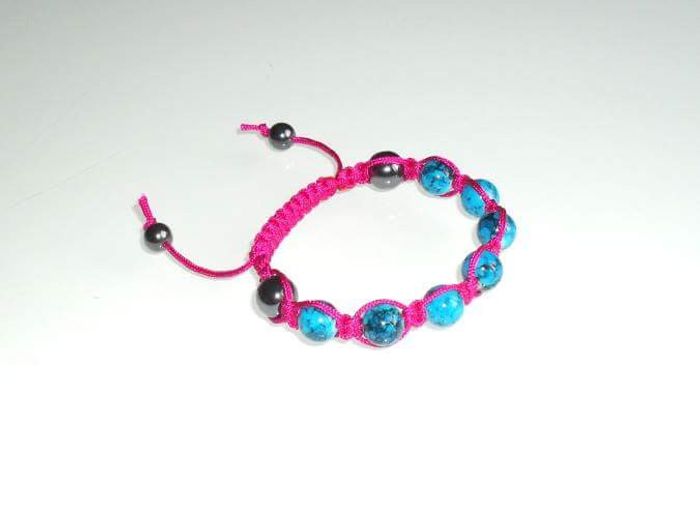 Bracelet shamballa rose et bleu. Cordon macramé rose et perles bleues . #elolie311_bijoux