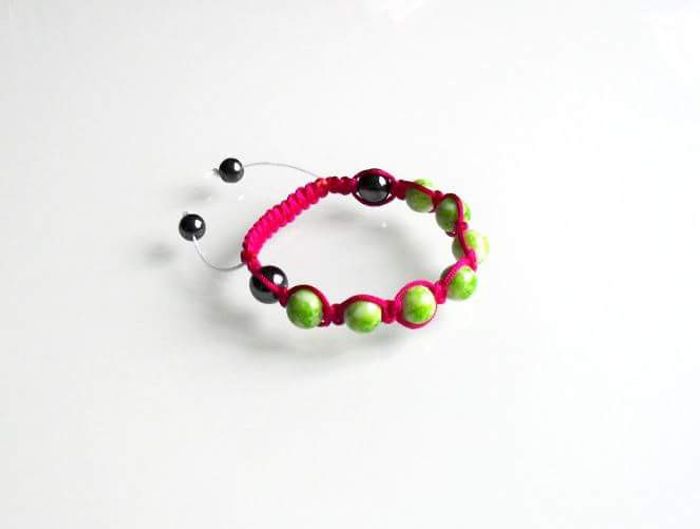 Bracelet shamballa rose et vert . Cordon macramé rose et perles vertes. #elolie311_bijoux