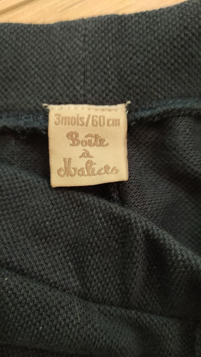 Pantalon 3 mois bleu marine taille 60cm. Pantalon élastique à la taille avec des poches.