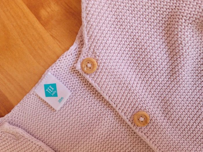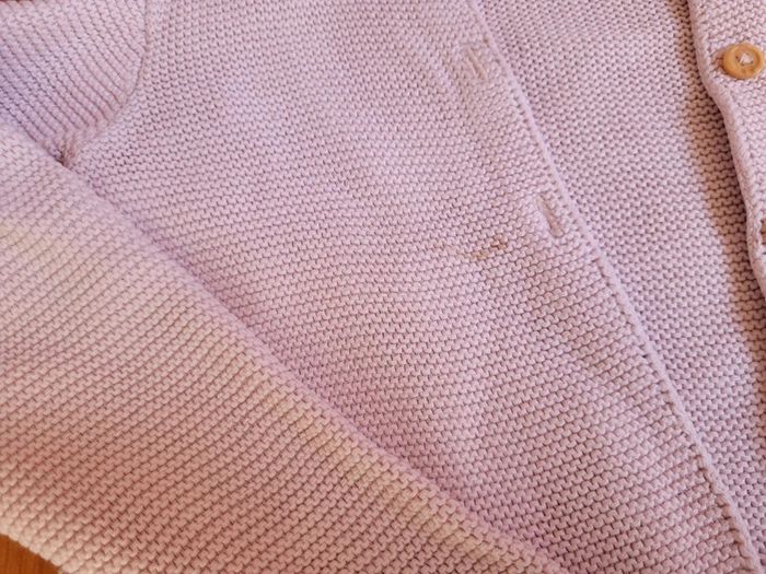 Lot de deux gilets en point mousse Taille 36 mois Rose et beige L'un d'entre eux a une petite tache Je ne connais pas la marque mais bonne qualité