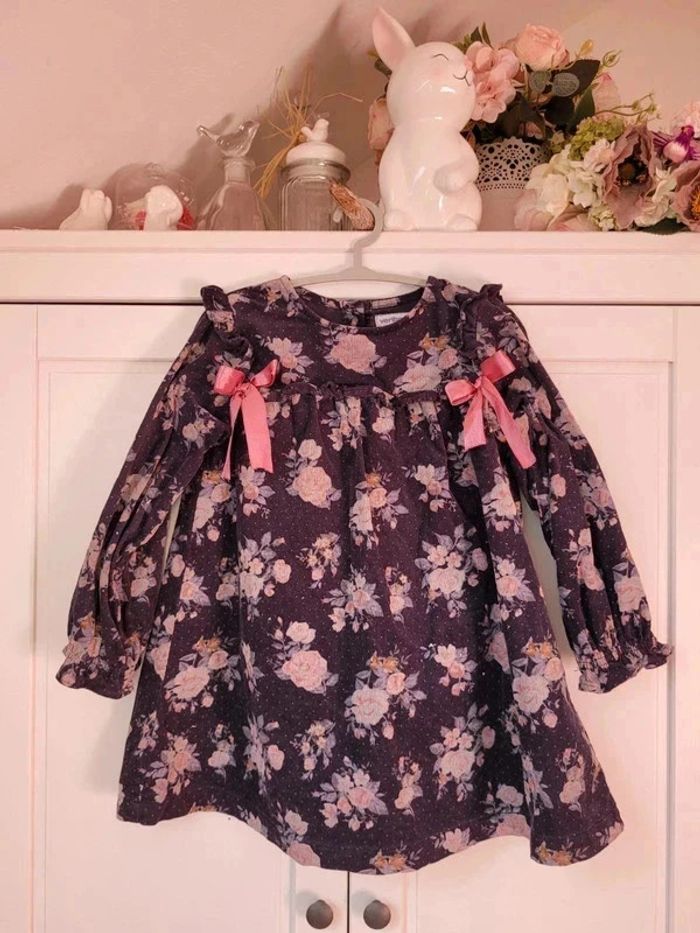 Petite robe en velours côtelé manches longues -Motif fleurs et rose -Marque verbaudet mais ressemble à un style lola palacios , dolce petit , Miranda -Convient à un 24-36 mois -Excellent état proche du neuf - j'ai refait la photo car le soleil reflétait sur le mur rose - envoi très rapide