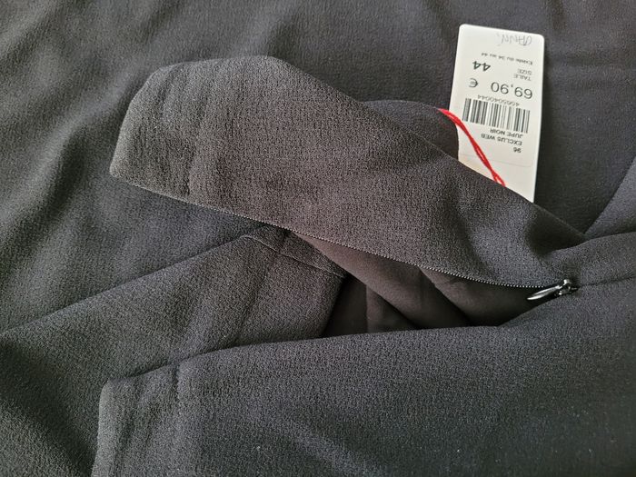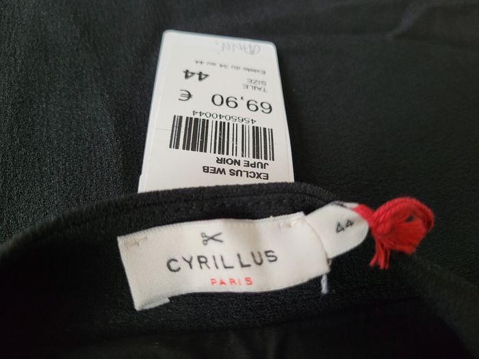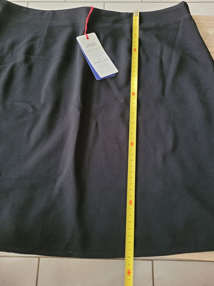 Vend jupe femme taille 44 neuve, encore l'étiquette dessus, jamais portée car mauvaise taille et pas de possibilité d'échange. Fermeture fonctionnelle et mesure de longueur de la jupe montrées en photo. Prix d'achat 69,90 euros. Marque Cyrillus.