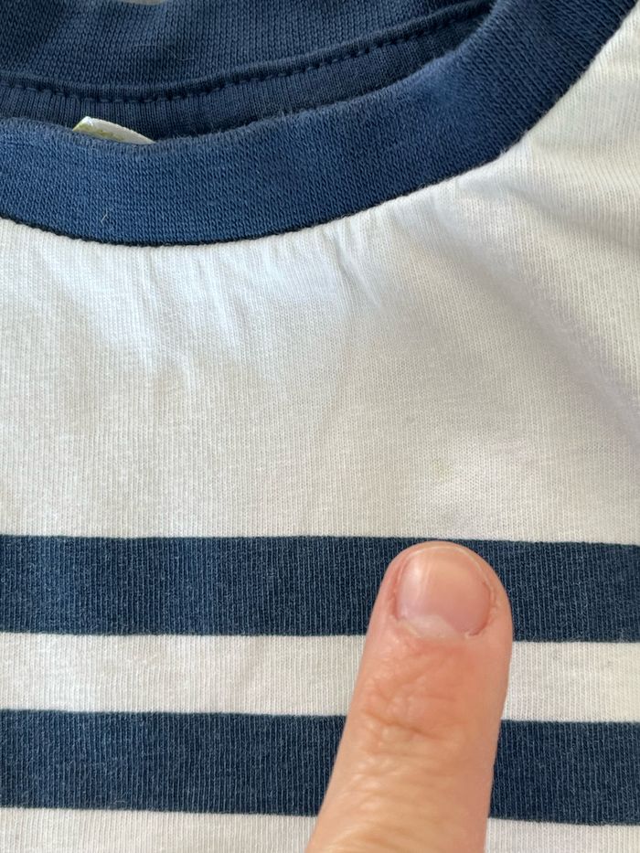 En très bon état (juste une mini tache sur le maillot bleu) Lot de 2 Maillots manches courtes Taille: 18 mois Marque: tape à l’œil Maison non fumeur et personne soigneuse.