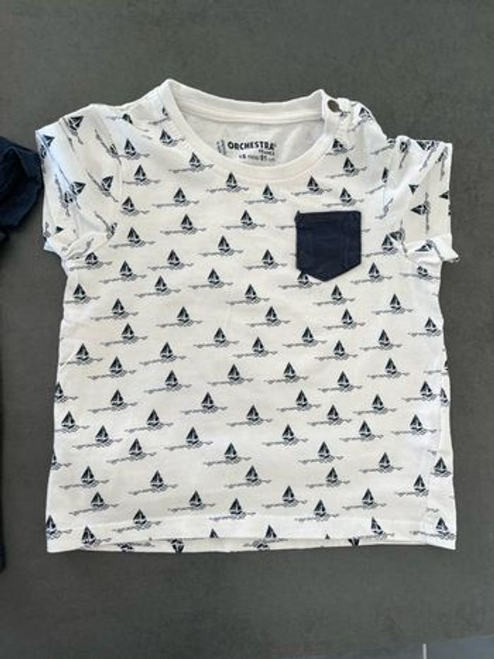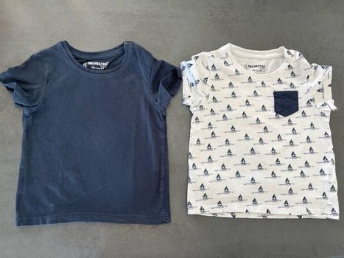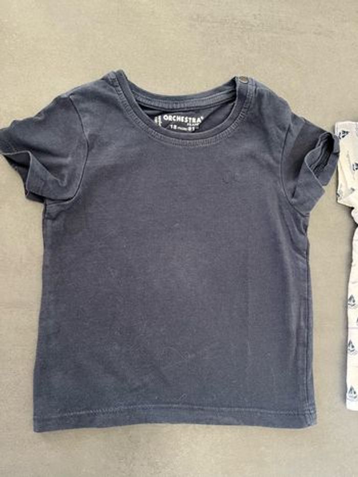 En très bon état. Lot de 2 Maillots manches courtes Taille: 18 mois Marque: orchestra Maison non fumeur et personne soigneuse.