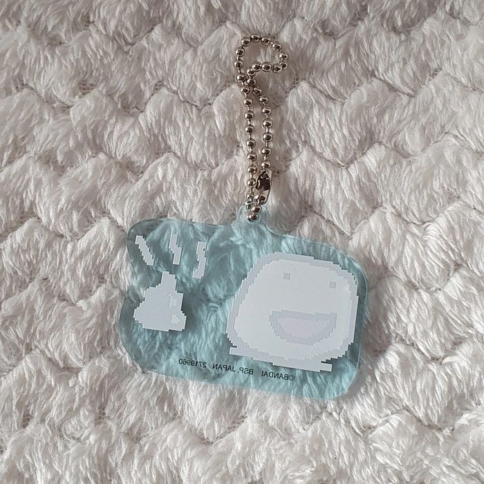 Acrylic keychains that can be attached to bags and more, featuring jeu Tamagotchi baby ShiroBabytchi japao clear Clearance NEW Tamagotchi Osewa no Omoide Acrylic Shiro Babytchi BallchaIn Strap 2024 Banpresto Bandai Prize Japan acrylique rose et vert gasha gacha gashapon gachapon