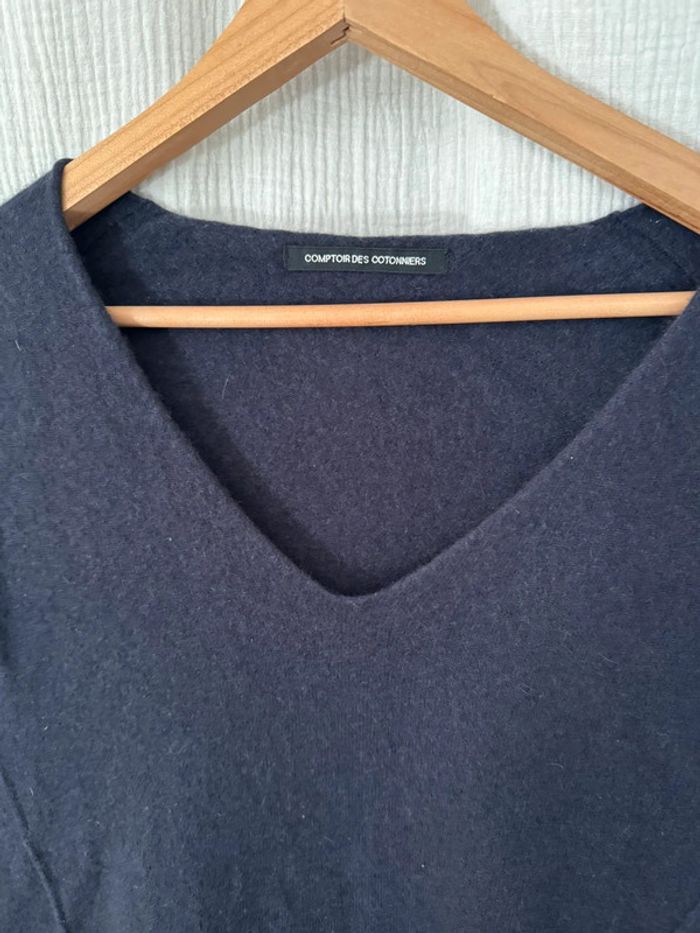 Pulls col V Comptoir des Cotonniers bleu marine cachemire M 38 - photo numéro 2