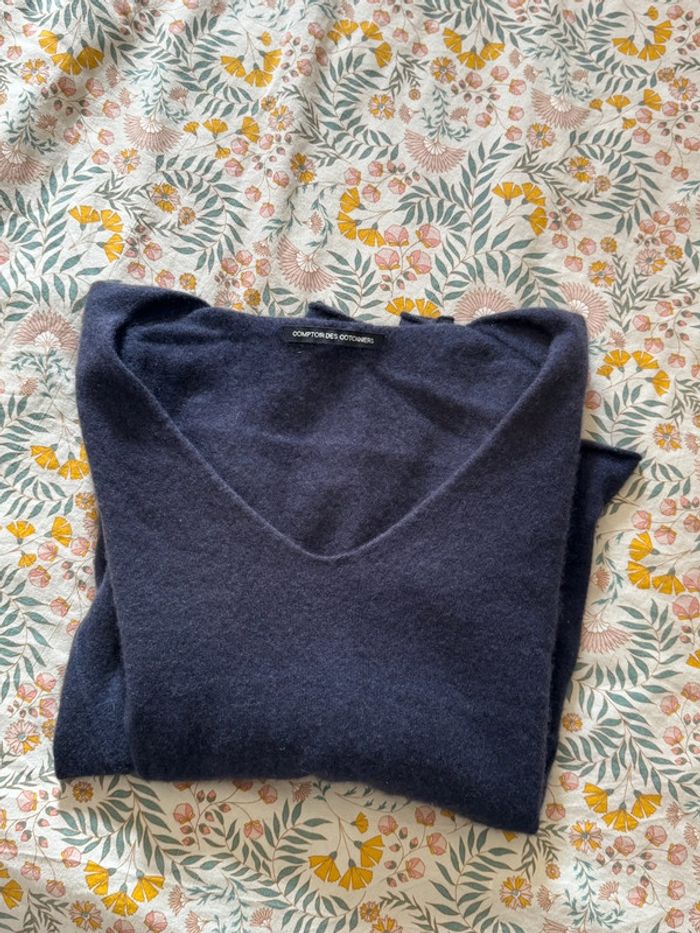 Pulls col V Comptoir des Cotonniers bleu marine cachemire M 38 - photo numéro 1