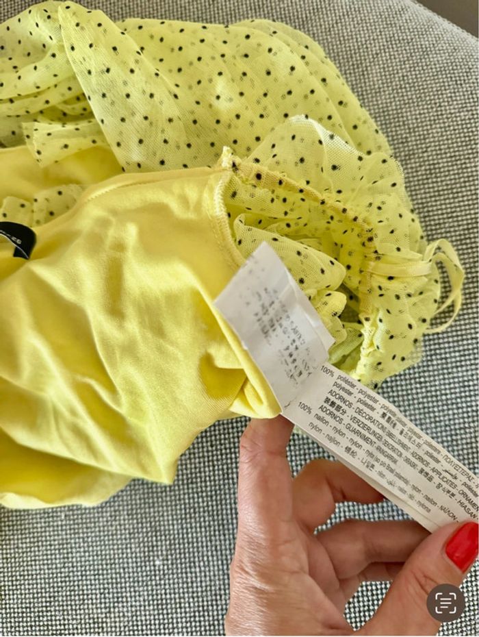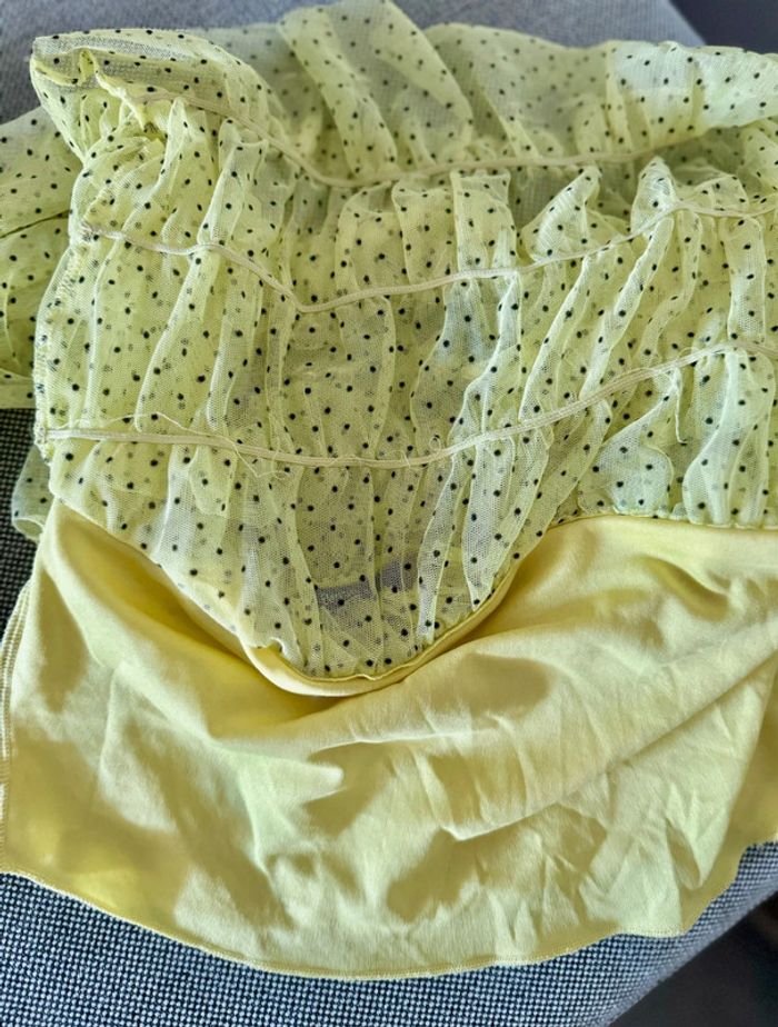 Blouse tulle volants jaune pale à pois noir Bershka 36 S - photo numéro 7