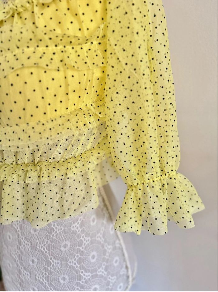 Blouse tulle volants jaune pale à pois noir Bershka 36 S - photo numéro 5